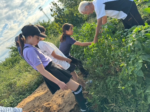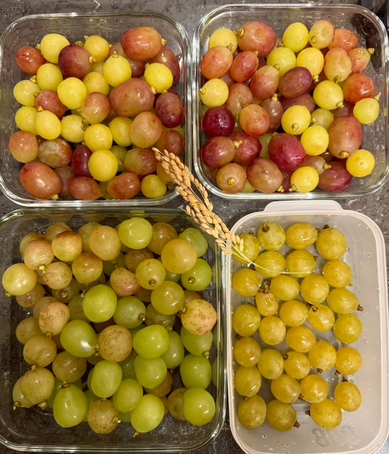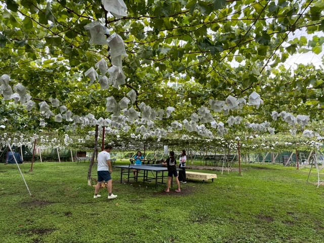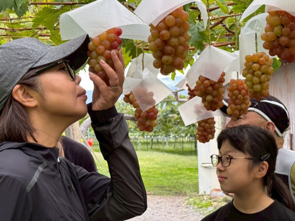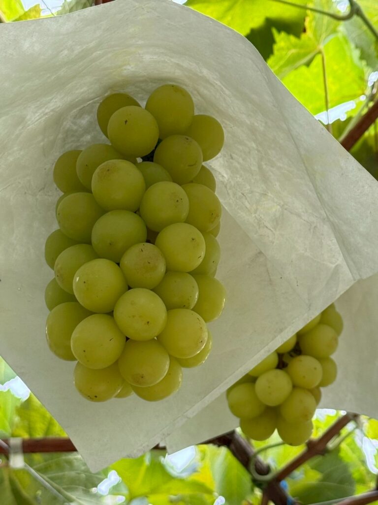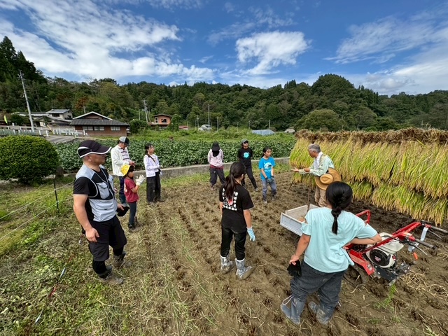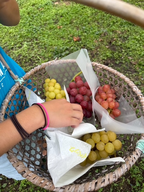 最初にブドウ狩りをし、その後、Twinkle米の稲刈りをしました☆