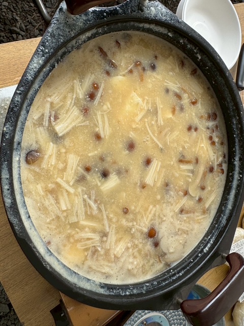 みんなでキノコ汁&おやき、お赤飯などを食べて、マレットゴルフへ!!!